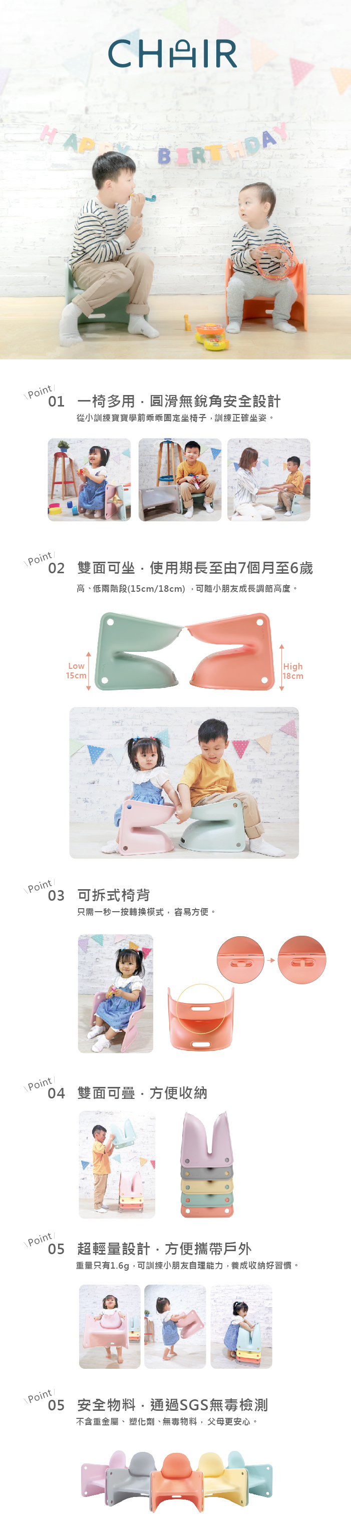 正反面雙重高度,從小寶用到大寶
