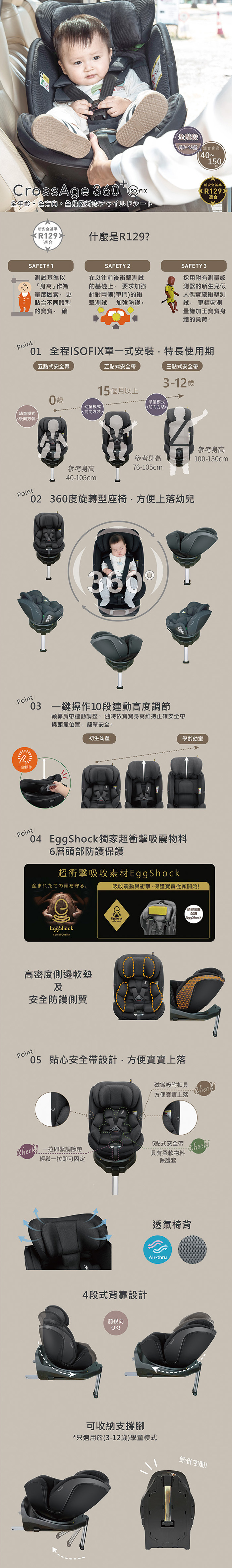 從0 歲起,守護孩子安全 ‧ 0-12 歲通過R129 安全法規汽車安全成長座椅