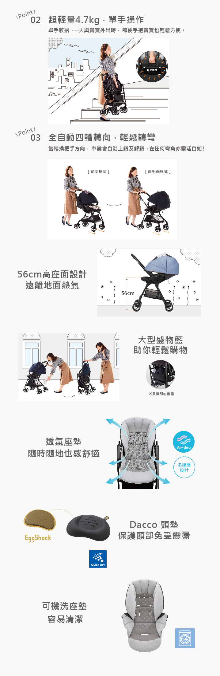 超輕量4.7kg ‧ 單手收摺輕鬆提起