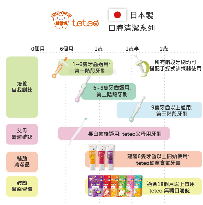 約 12 個月+ ( 9隻牙齒) 起適用