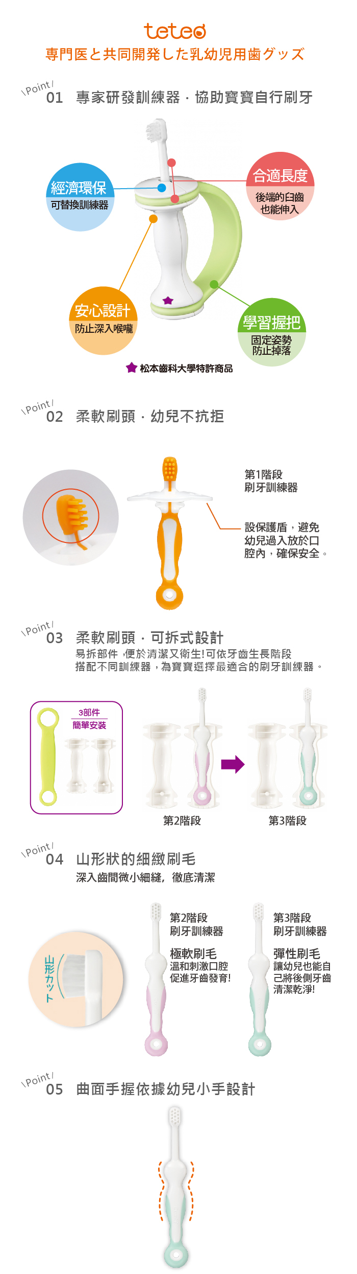 特製軟矽膠柔刷毛,避免傷害乳牙